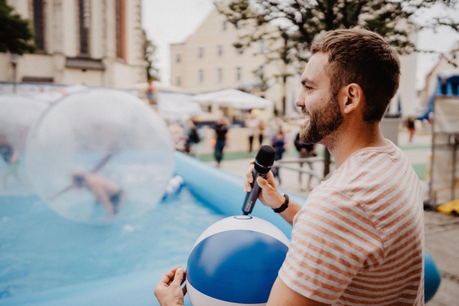 Ich begleite dein Event mit klarer Kommunikation, sympathischer Präsenz und echter Leidenschaft - vom Stadionevent, über Talkformate bis hin zur Freien Trauung.
